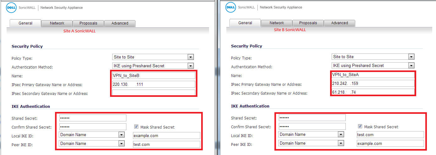 Shared Secret: 兩台SonicWALL 必須相同