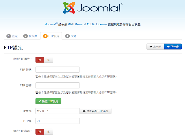 最後確認configuration.php是否可以寫入,若無法寫入請把產出來的內容貼上,大功告成。