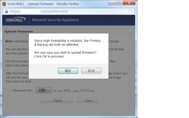 設備會自動檢查到現在是在HA的狀態之下,是否要上傳Firmware