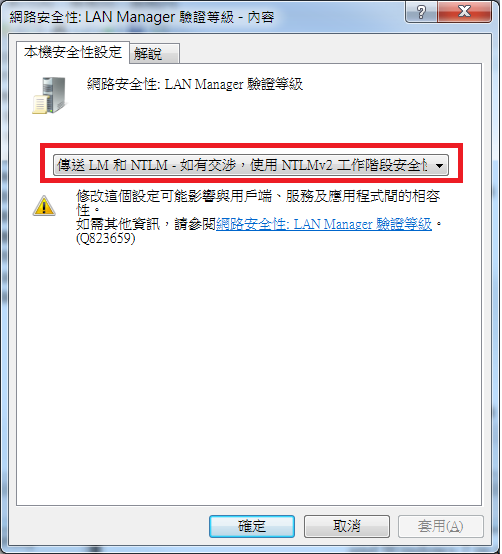Vista & Windows 7 使用NTLM 認證必須在使用者端設定群組原則 (可使用AD GPO派發)