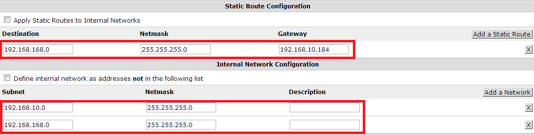 設定Static Route: 若內部網路還有其餘網路是SWG不認得,必須加入Static Route
